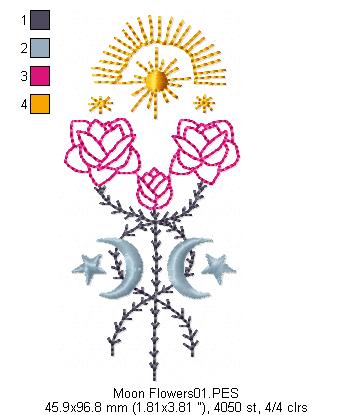 Moon Flowers - Redwork