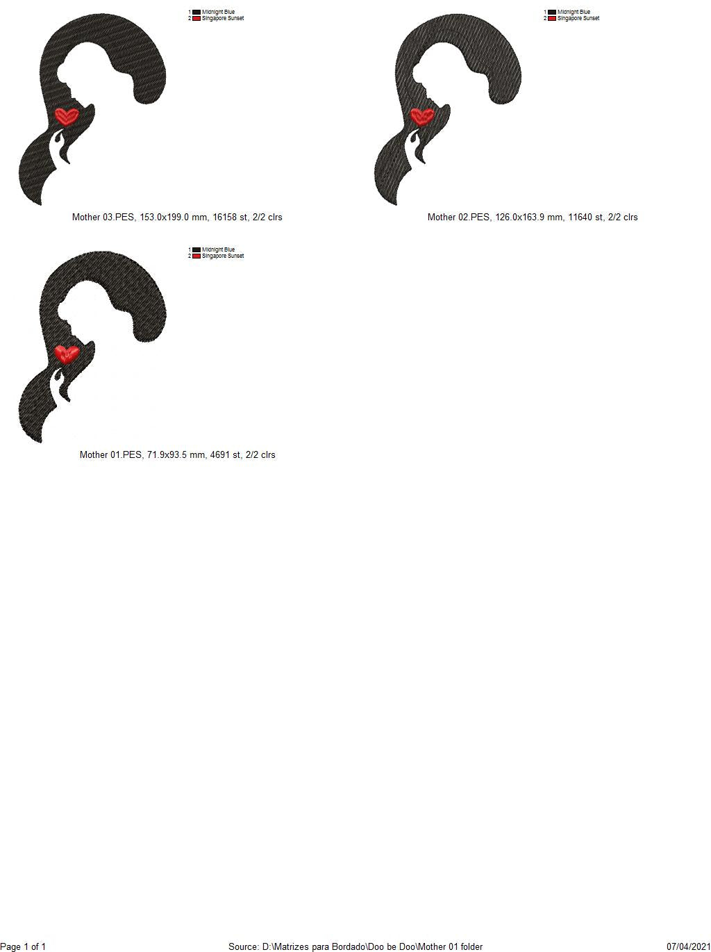 There are 3 sizes included, please check the information under the pictures for the precise sizes of each design, stitch count, color changes and etc.