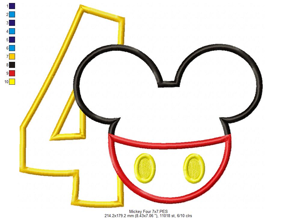 Mouse Ears Boy 4th Birthday Number 4 - Applique Embroidery