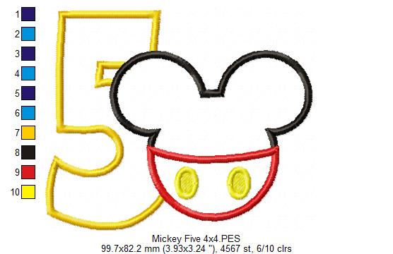Mouse Ears Boy 5th Birthday Number 5 - Applique Embroidery