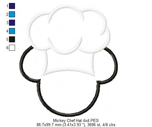 Mouse Ears Boy and Girl kitchen Chef Hat - Set of 2 Designs - Applique Embroidery