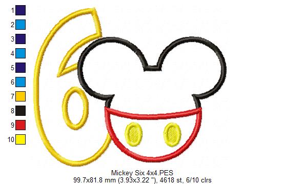 Mouse Ears Boy Number 6 Six 6th Birthday - Applique Embroidery