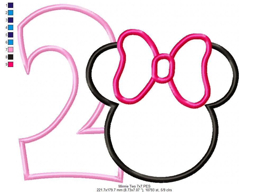 Mouse Ears Girl Number 2 Two 2nd Birthday - Applique