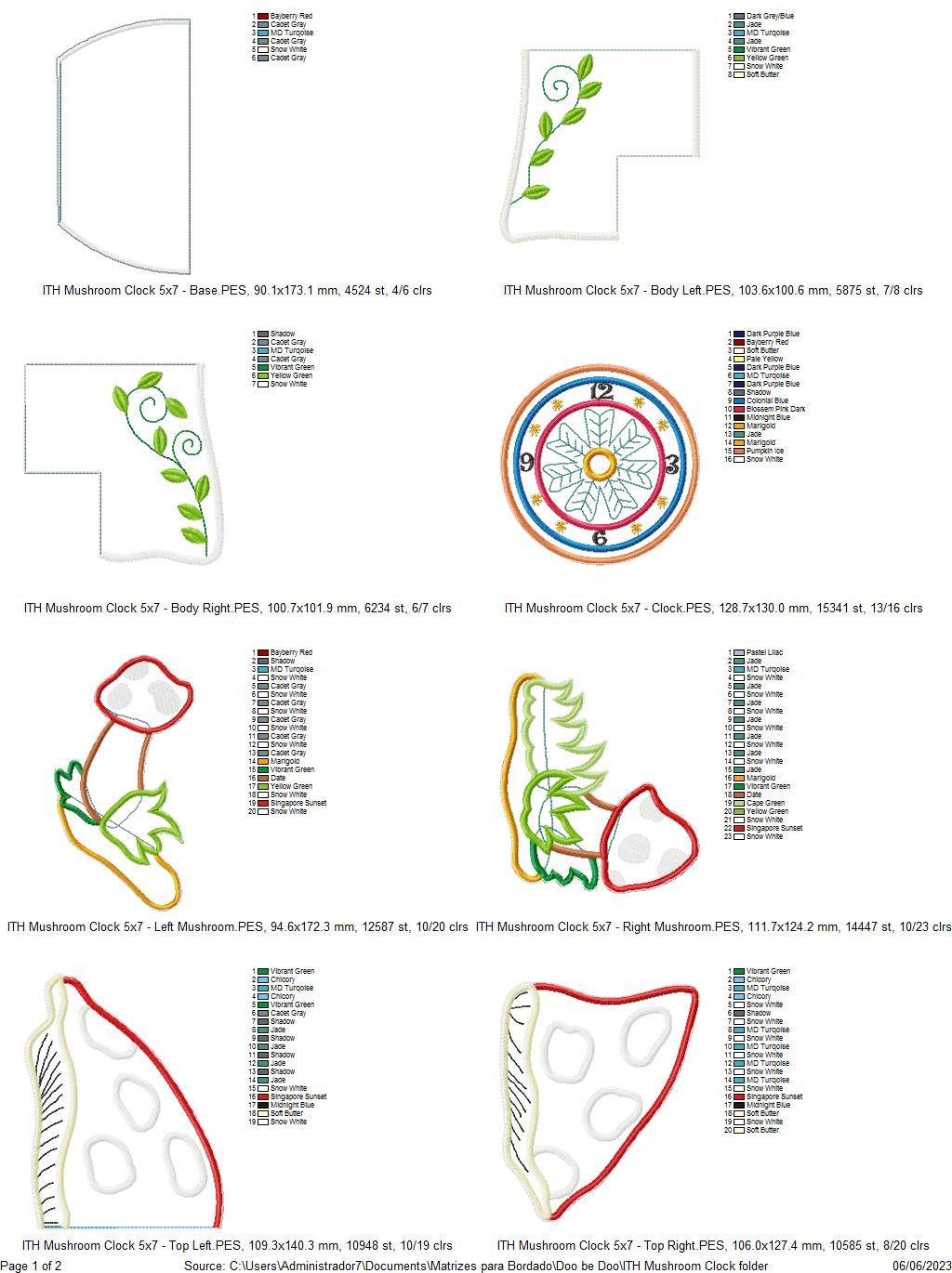 Mushroom Clock - ITH Project - Machine Embroidery Design