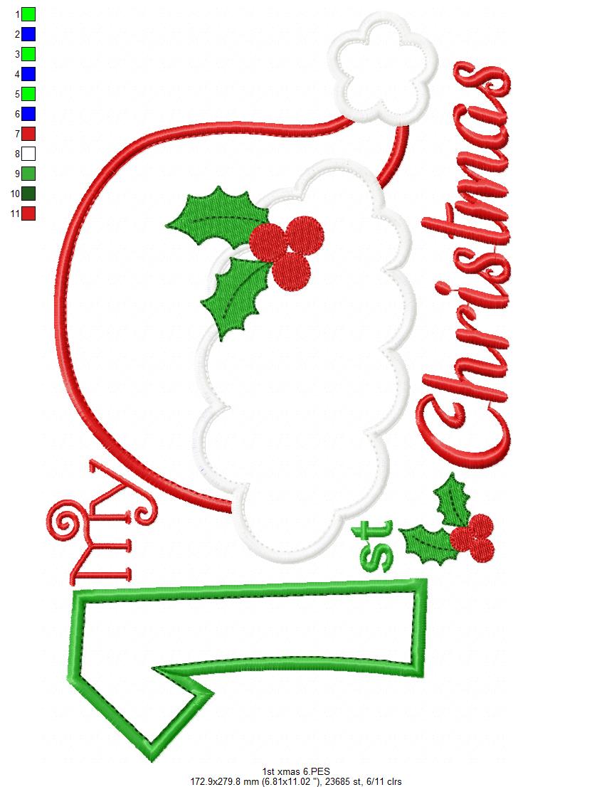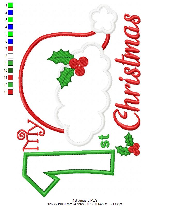 "Get ready to celebrate your little one's first Christmas in style with our My 1st Christmas embroidery design! Available in 5 sizes, this machine embroidery design is the perfect way to add a personalized touch to your holiday decorations. Download now for instant festive fun!"
