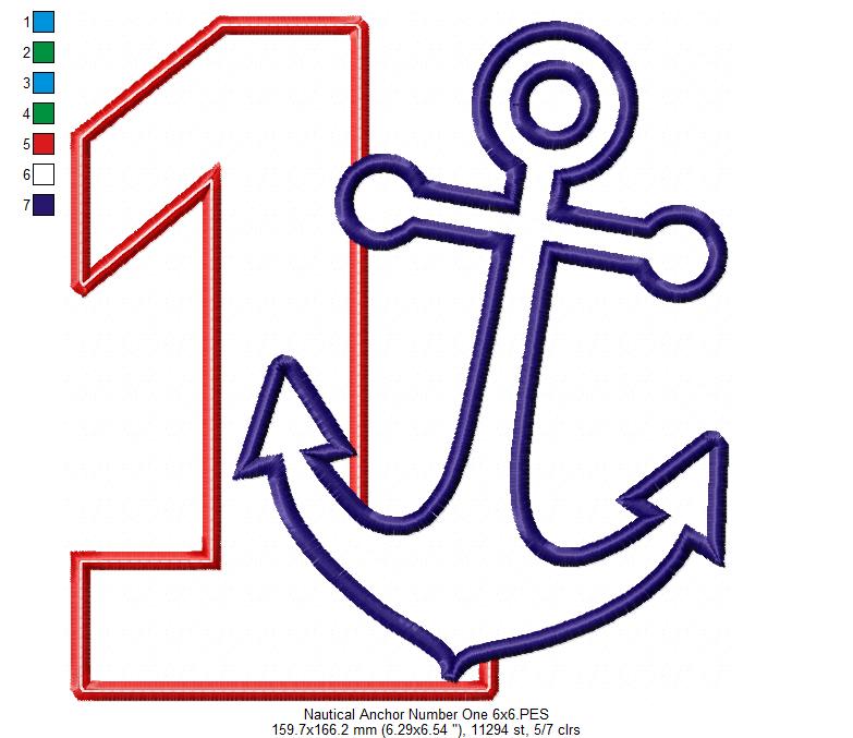 Nautical Anchor Number 1 One 1st Birthday - Applique