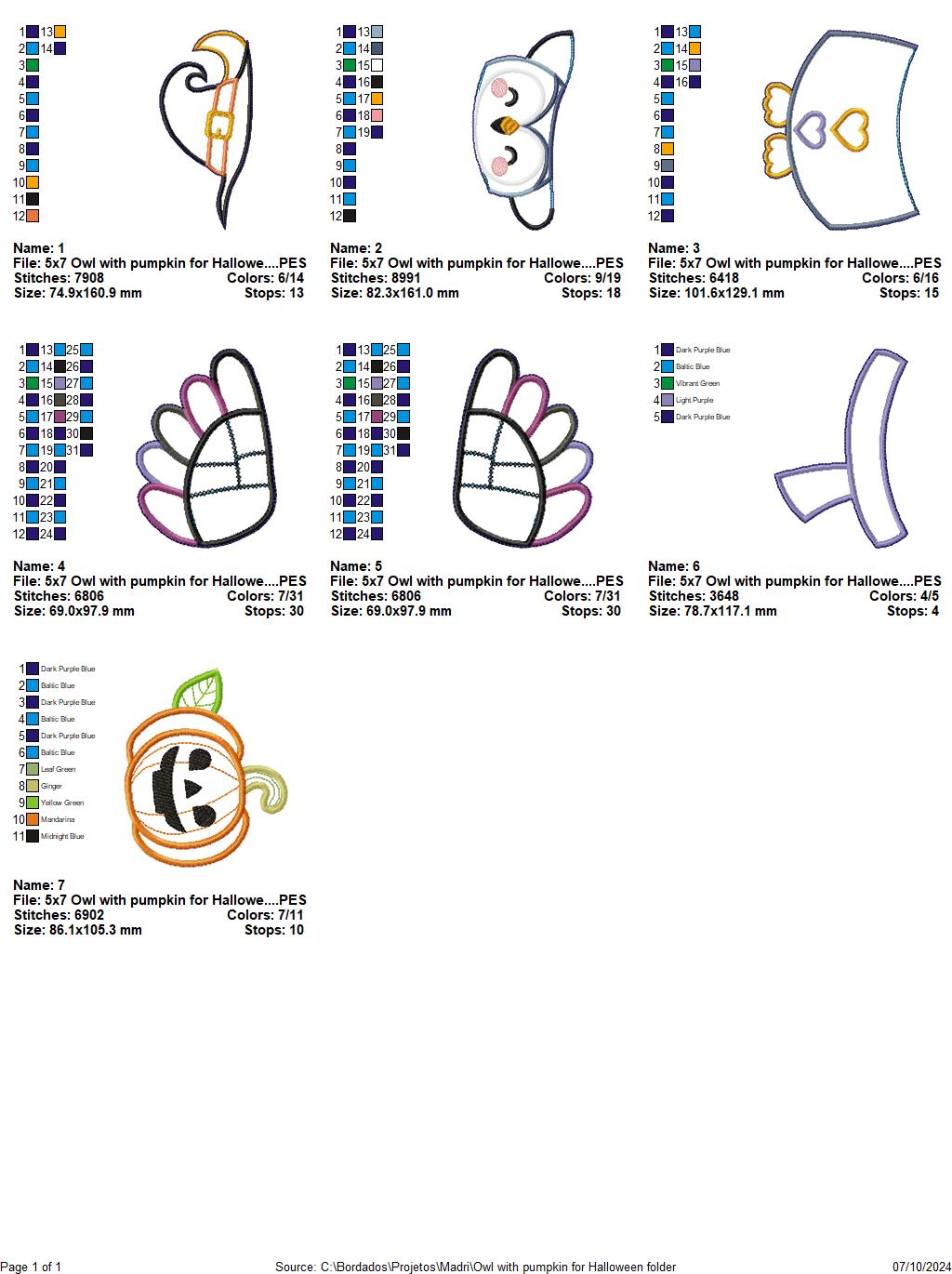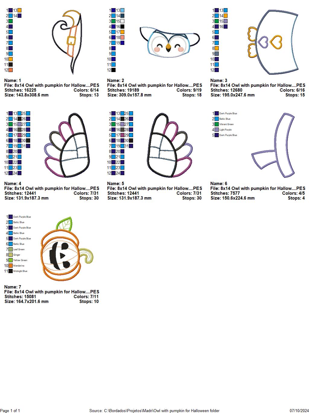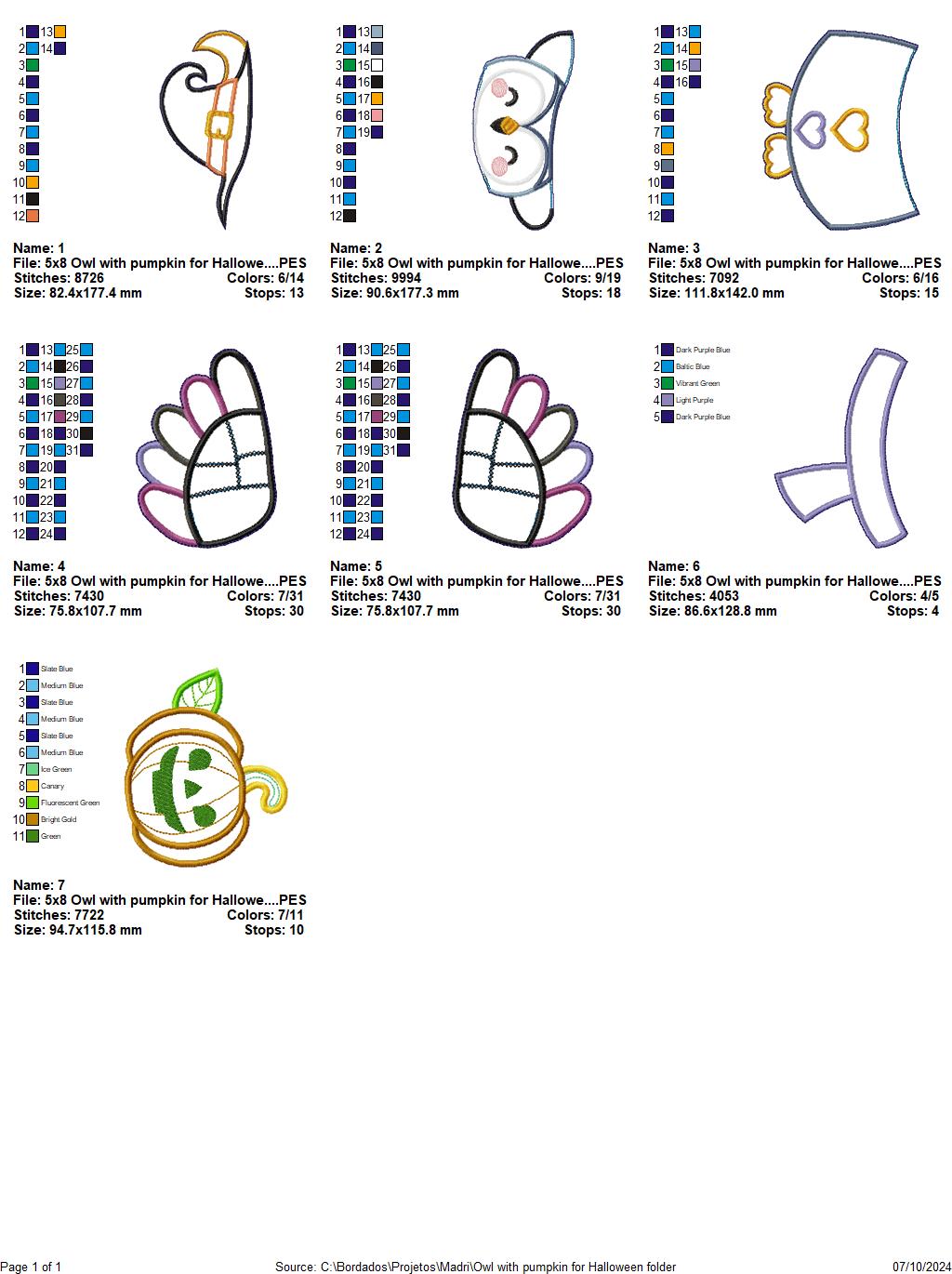 Owl with Pumpkin Halloween - ITH Project - Machine Embroidery Design