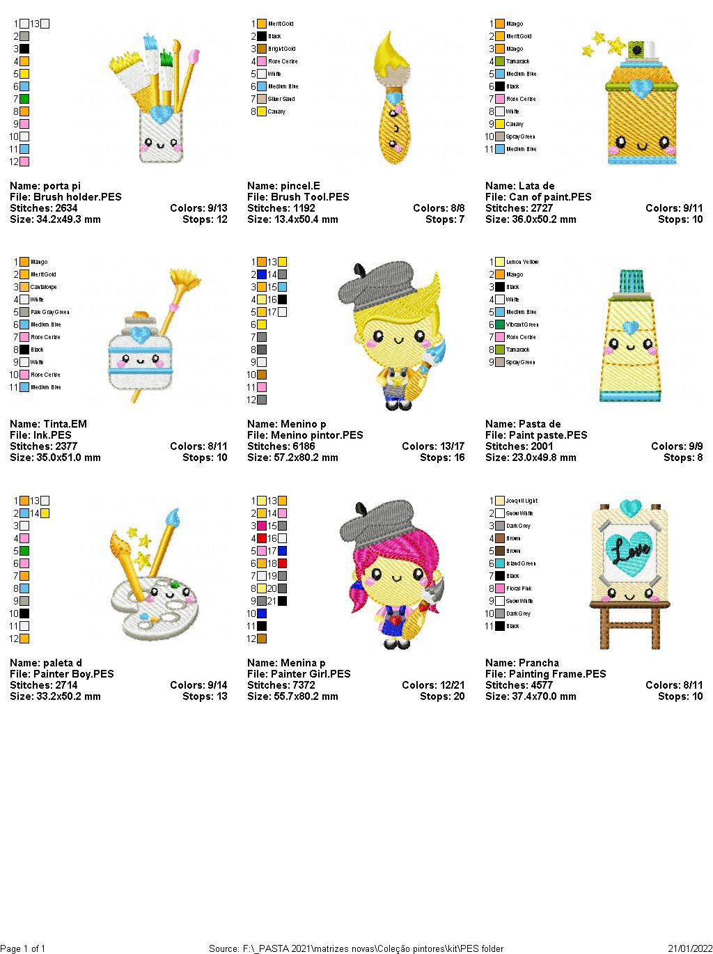 Painters Collection - Set of 9 designs - Fill Stitch - Machine Embroidery Design