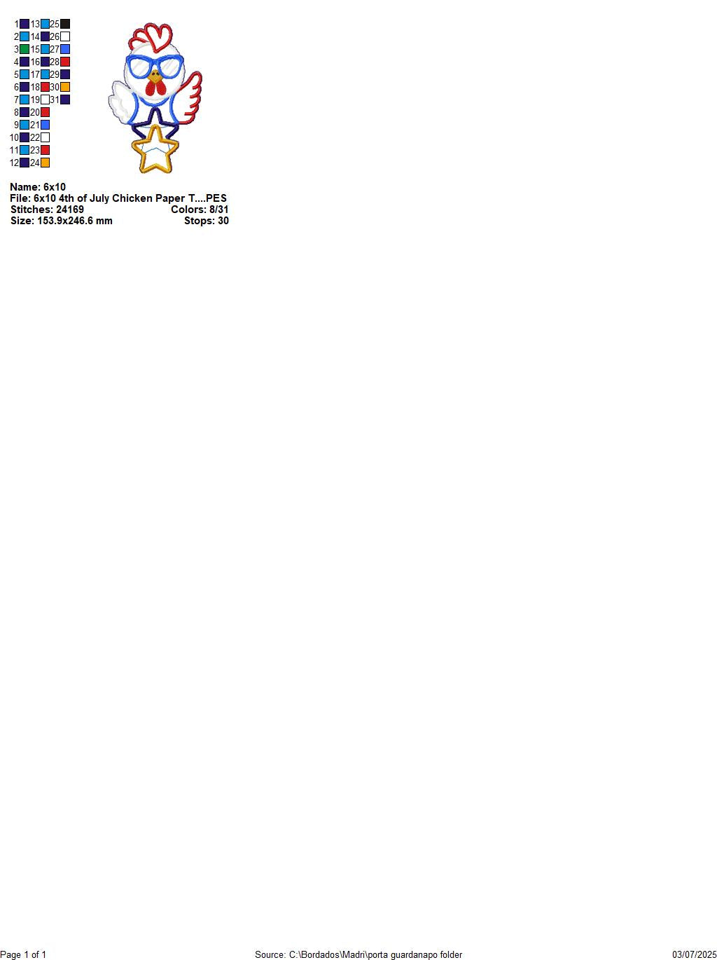 Patriotic Chicken Paper Towel Holder Cover – ITH Project – Machine Embroidery Design 🐔⭐