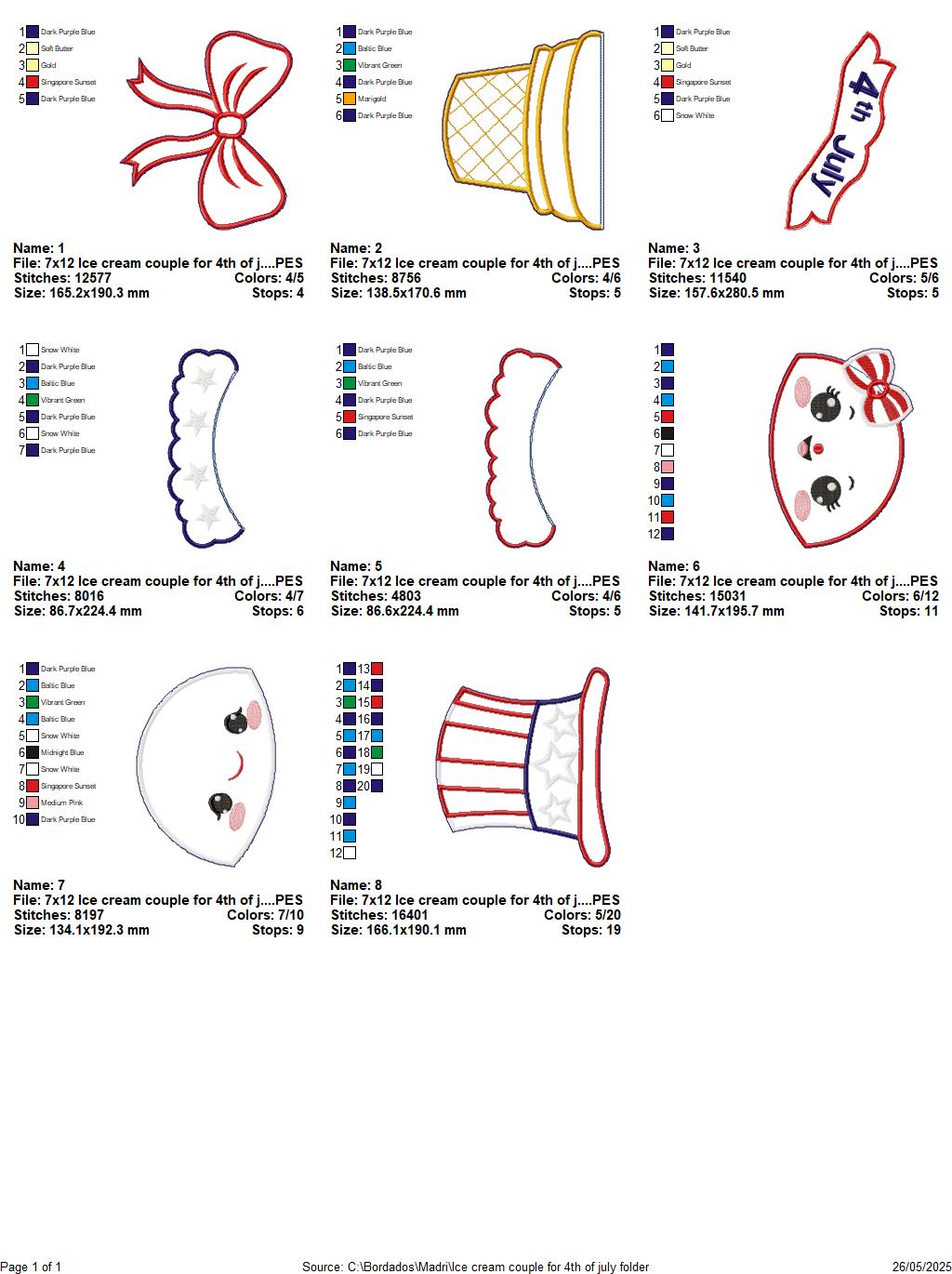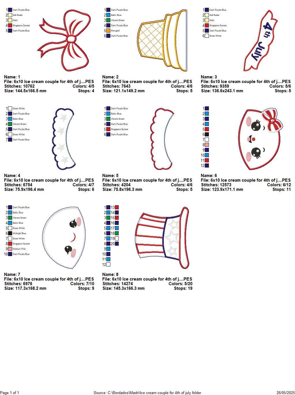 Patriotic Ice Cream Love Duo π¦β€οΈπ β ITH Project β Machine Embroidery Design