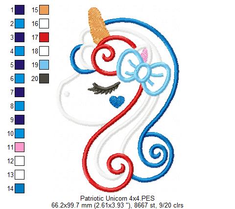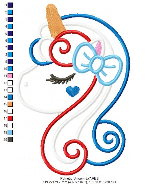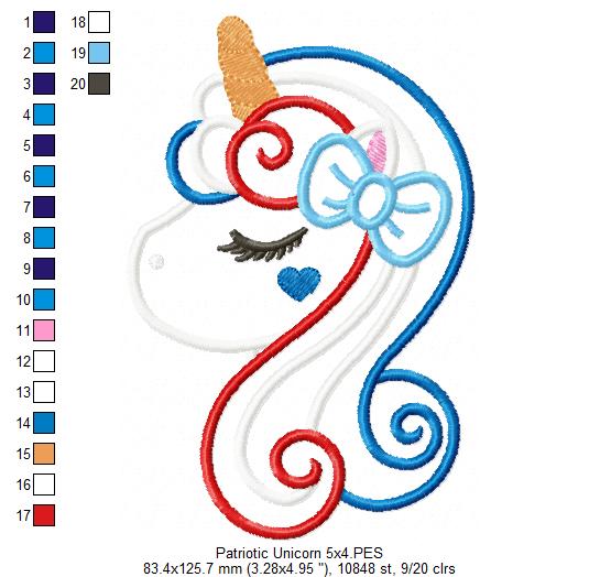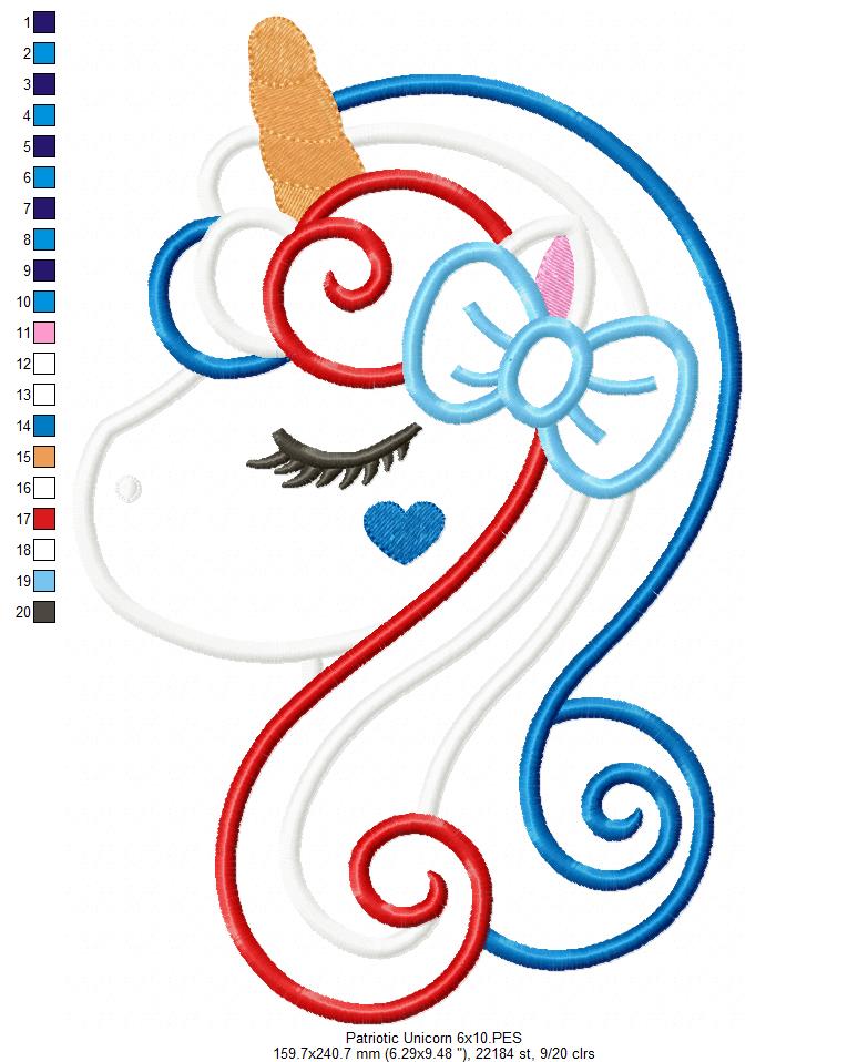 Patriotic Unicorn - Applique - Machine Embroidery Design