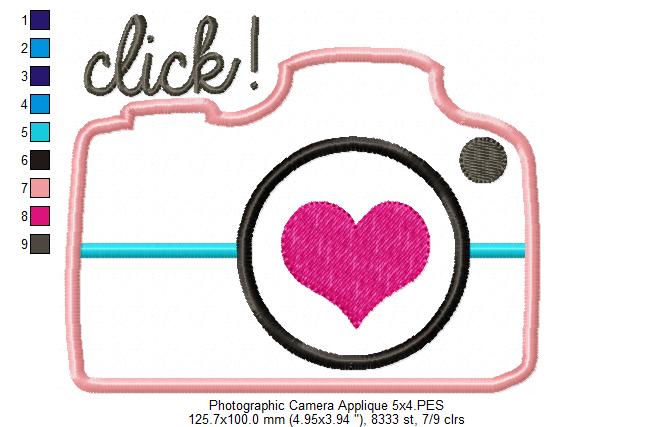 Click Camera with Heart – Appliqué – Machine Embroidery Design