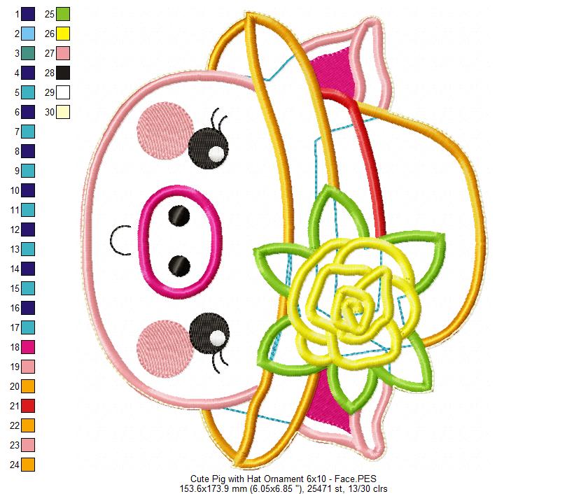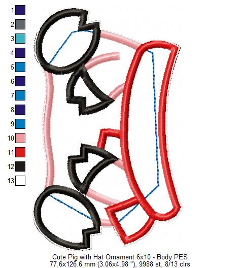 Pig with Hat Ornament - ITH Project - Machine Embroidery Design