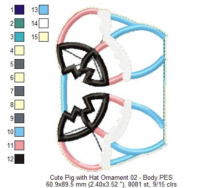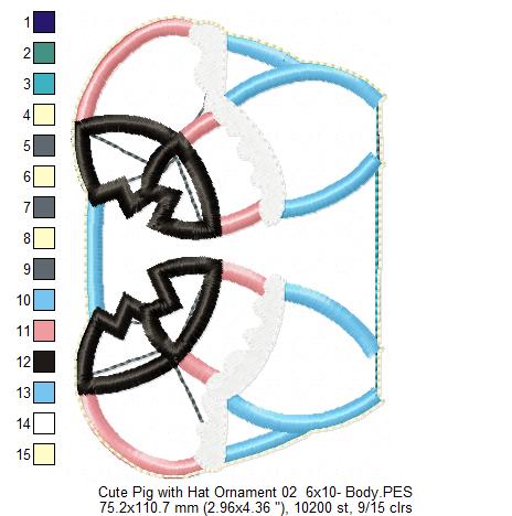 Pig with Hat Ornament - ITH Project - Machine Embroidery Design