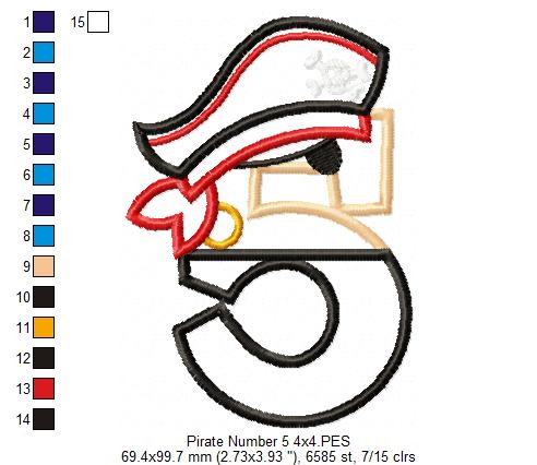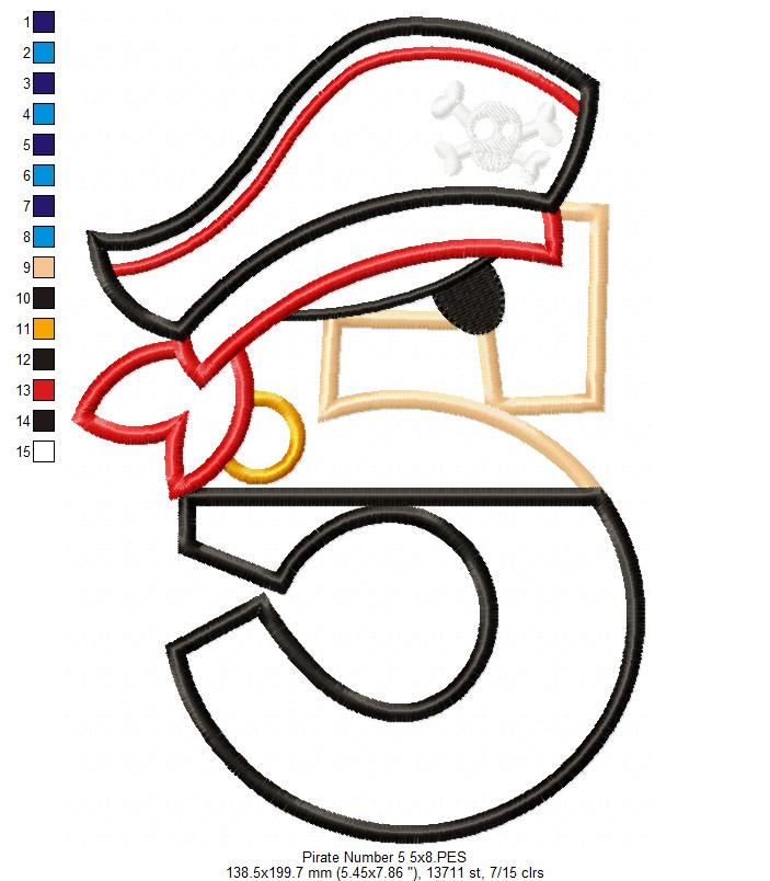 Make your birthday pirate dream come true with this embroidery design! Perfect for 4x4, 5x4, 5x7, 5x8, 6x10, and 7x12 machines, this instant download is sure to make your 5th birthday special. Make sure to check out our pirate embroidery today!