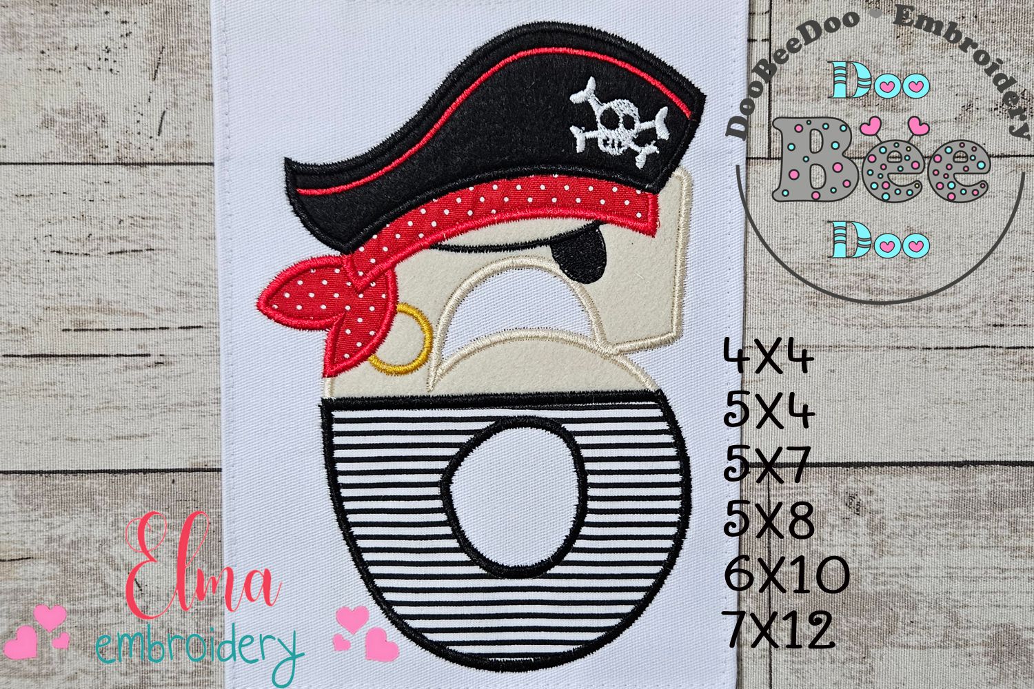 Pirate Birthday Number Six 6th Birthday - Applique - Machine Embroidery Design