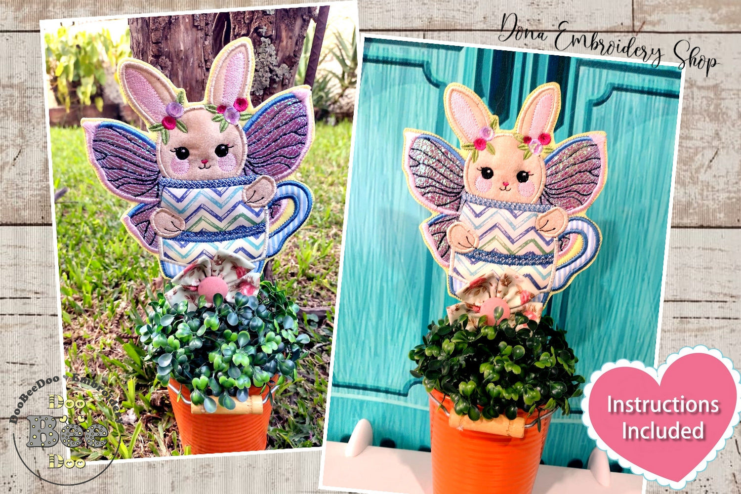 Bunny in the cup Vase Ornament - Applique - 5x7 6x10 7x12