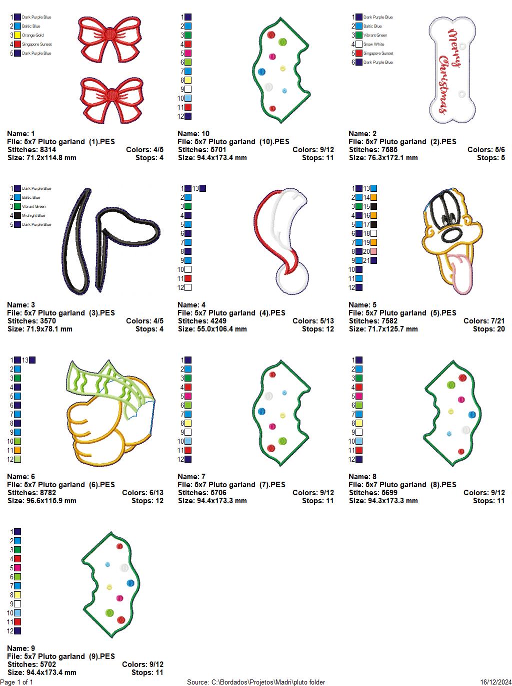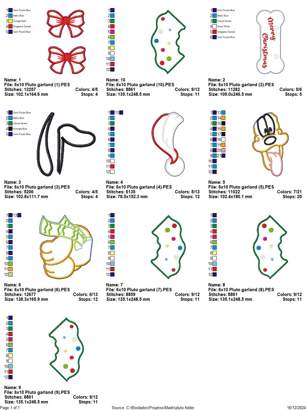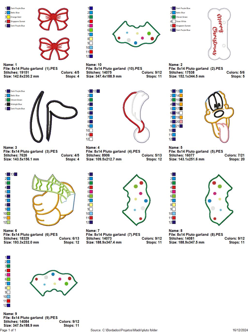 Pluto Christmas Garland - ITH Project - Machine Embroidery Design