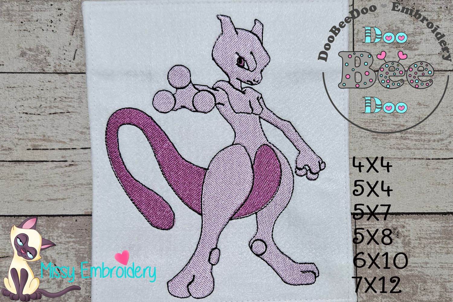 "Unleash your creativity with our Pokemon Mewtwo embroidery design! Perfect for machine embroidery, this fill stitch design comes in 6 sizes for all your crafting needs. Instantly download and add some magic to your next project."