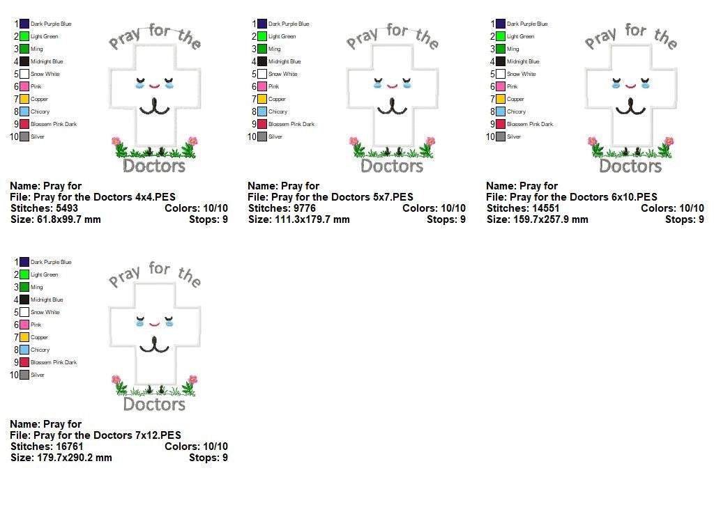 Pray for the Doctors Cross – Appliqué – Machine Embroidery Design