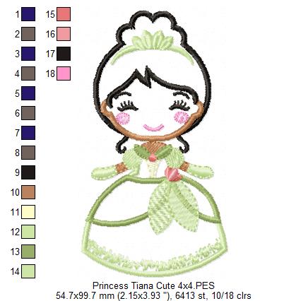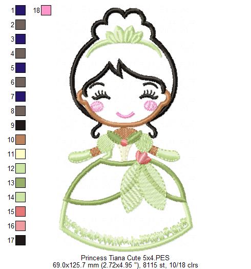 Princess Tiana Cute - Applique - Machine Embroidery Design