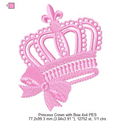 Get your royal groove on with the Princess Tiara with Bow embroidery design! Perfect for machine embroidery, this instant download design comes in 8 sizes and will add a touch of regal charm to any project. (Get your crown on, queens and kings!)