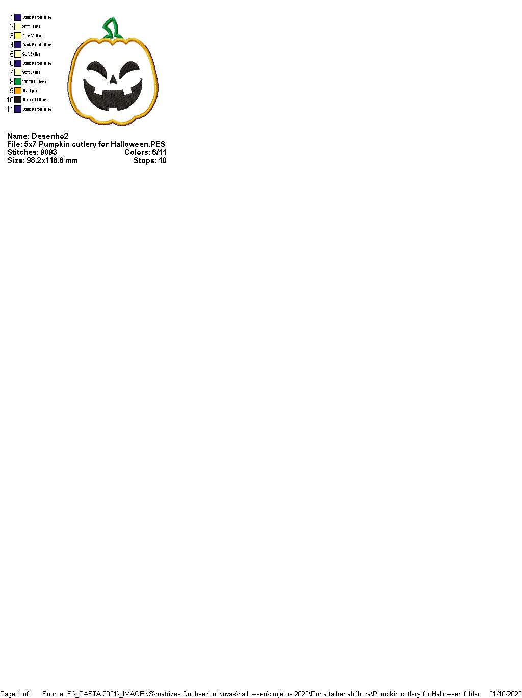 Pumpkin Cutlery Holder - ITH Project - Machine Embroidery Design