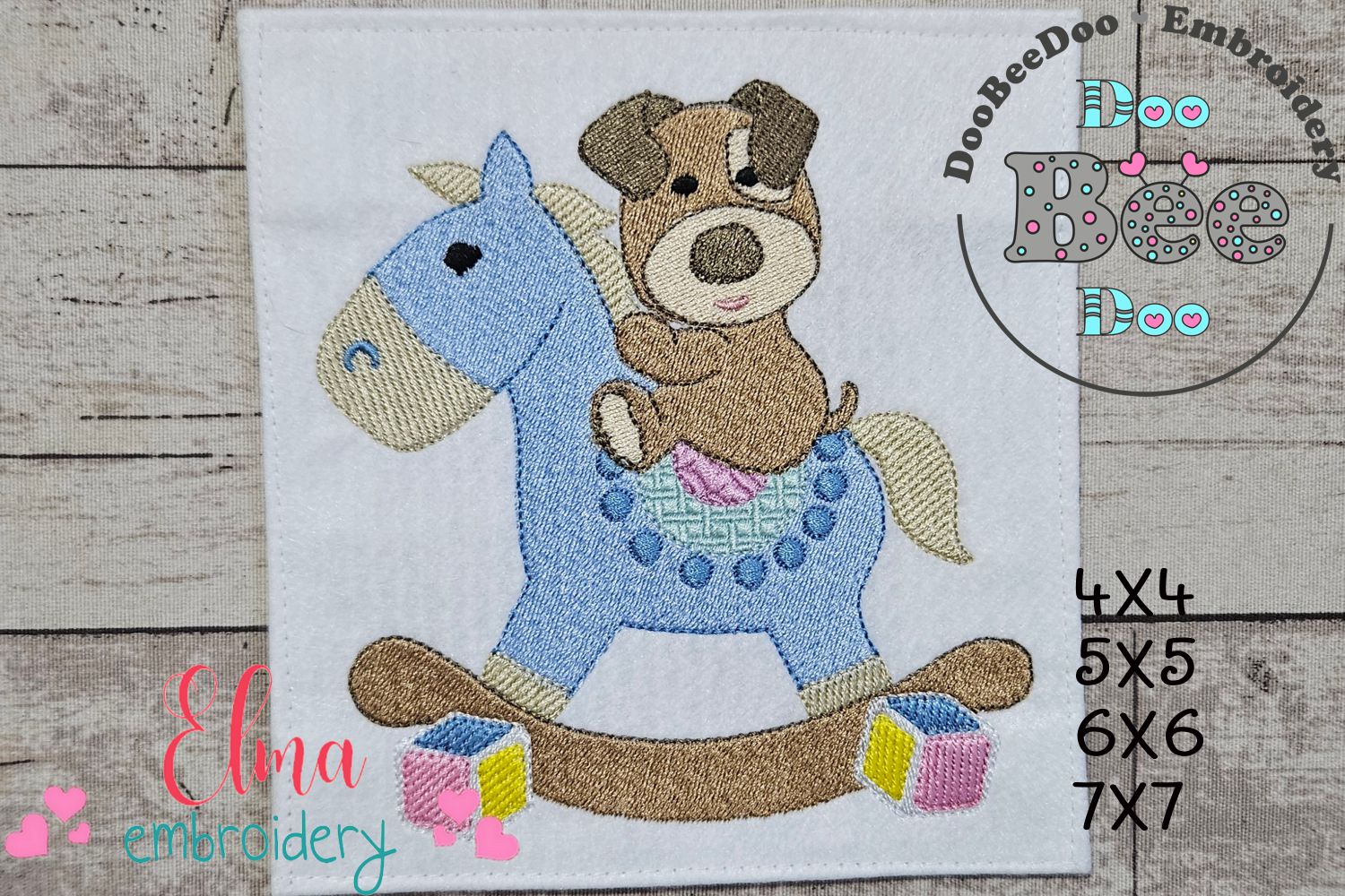 Puppy and Wooden Rocking Horse - Fill Stitch Embroidery