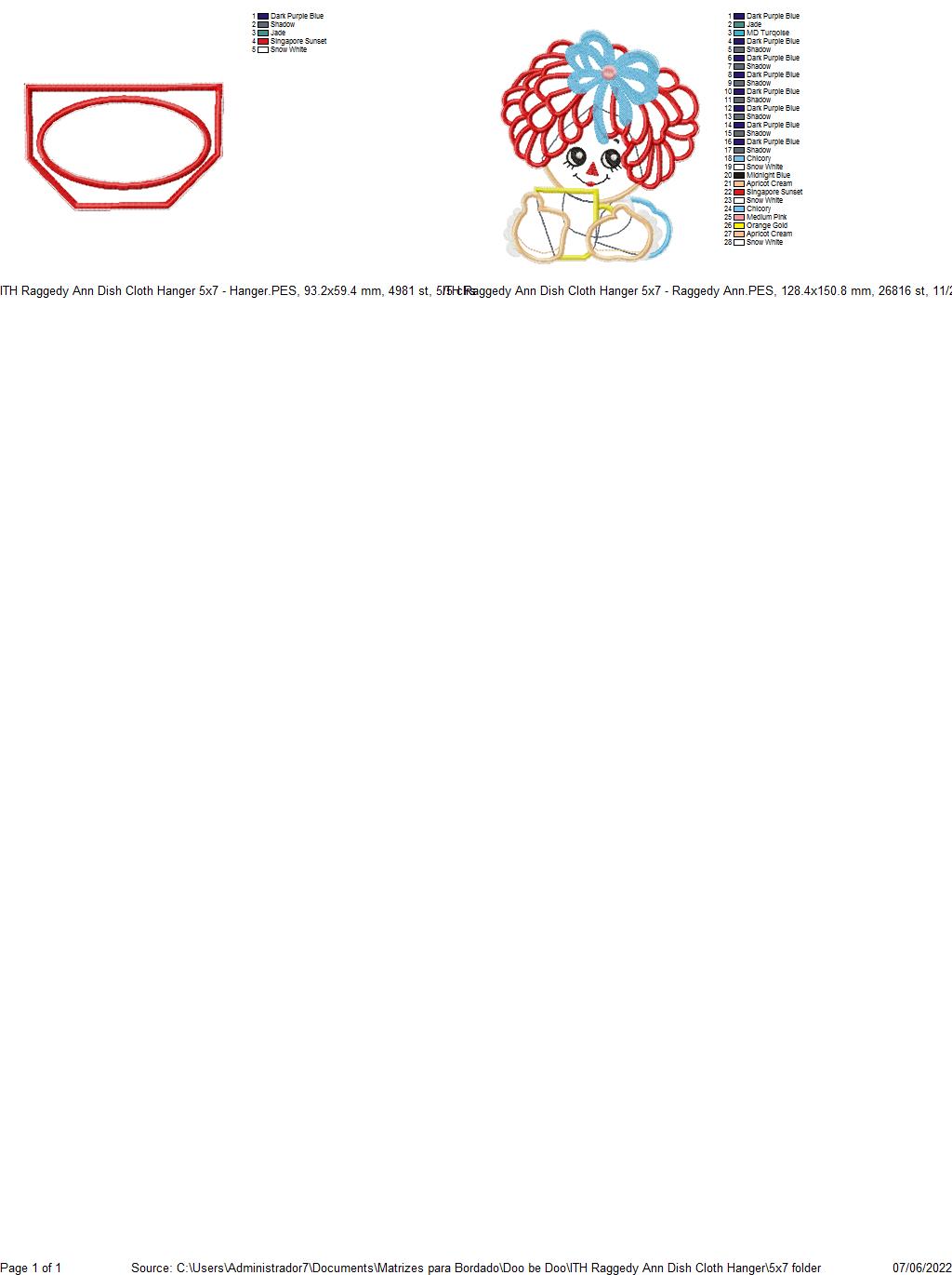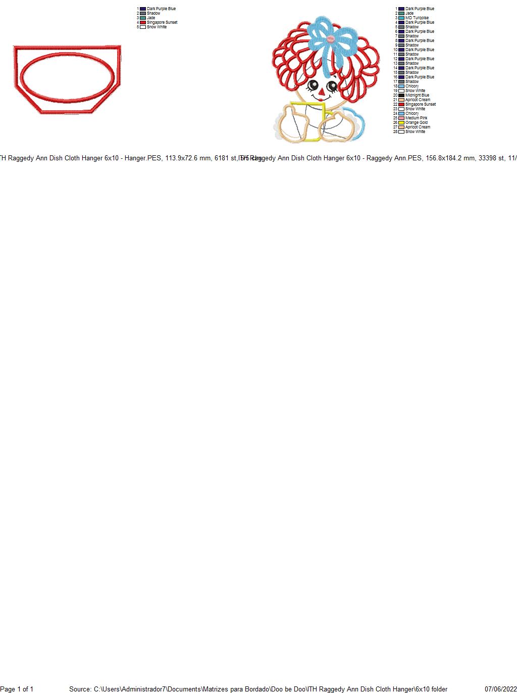 Raggedy Doll Dish Towel Holder - ITH Project - Machine Embroidery Design