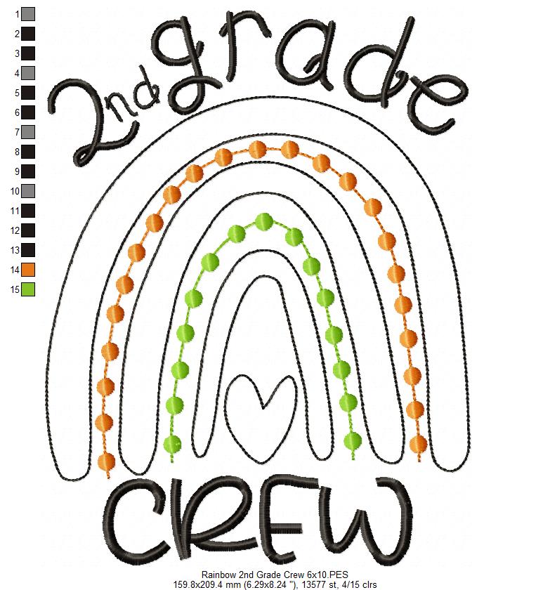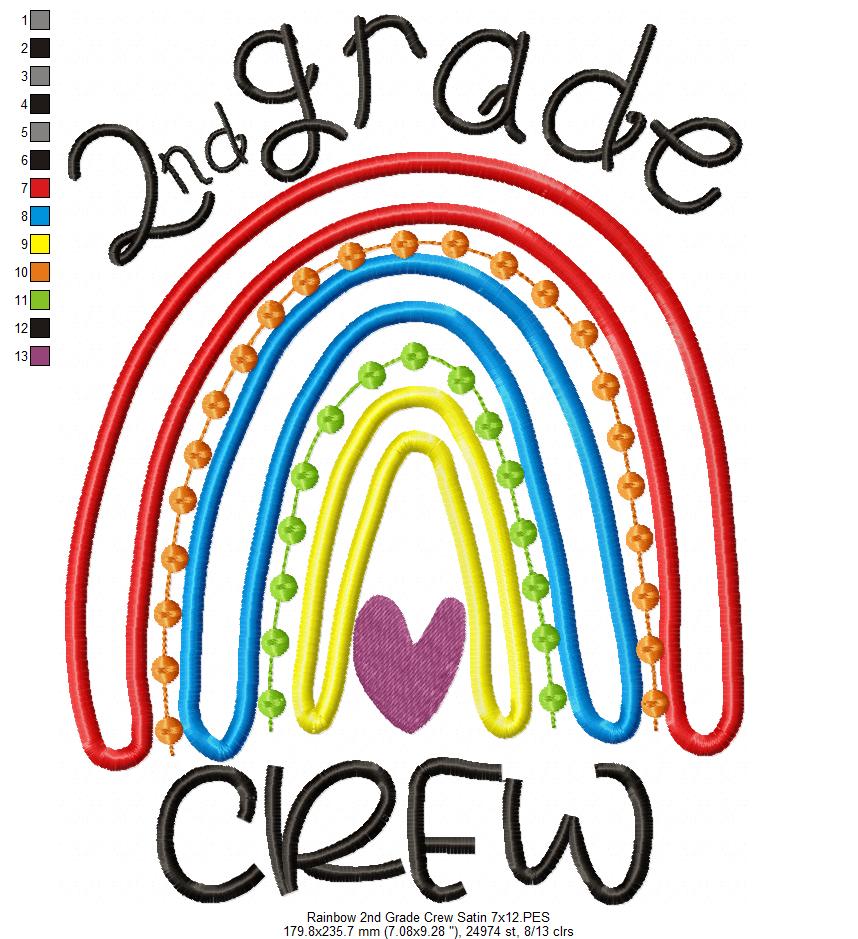 Rainbow 2nd Grade Crew - Satin and Bean Stitch Applique - Set of 2 designs