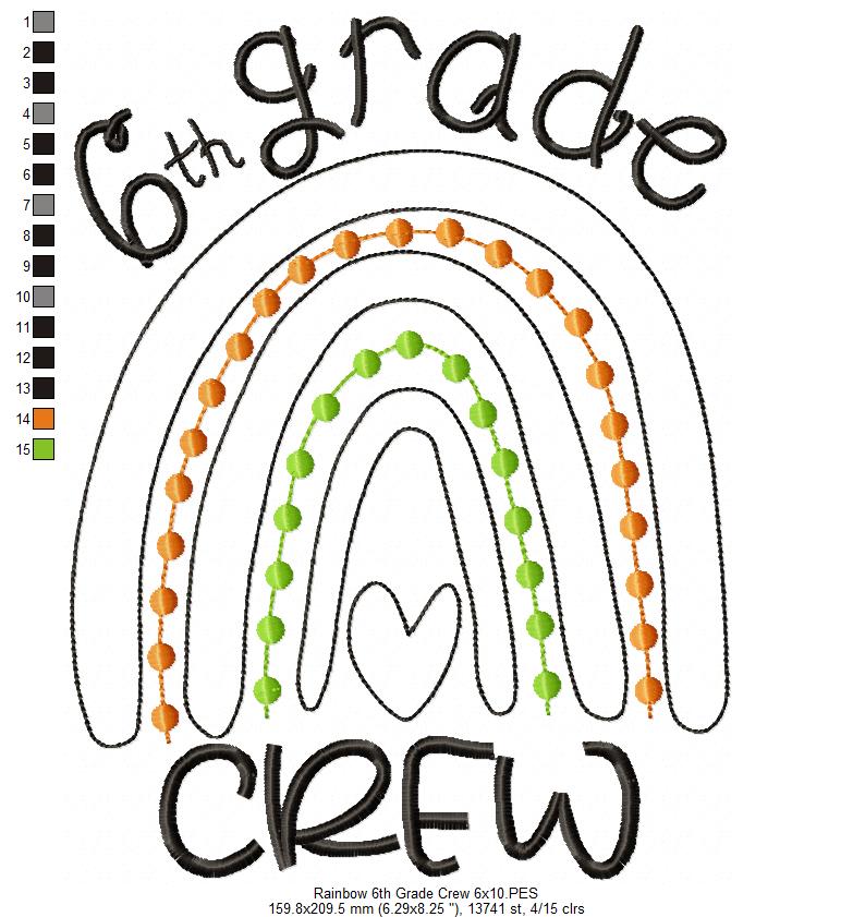 Rainbow 6th Grade Crew - Satin and Bean Stitch Applique - Set of 2 designs