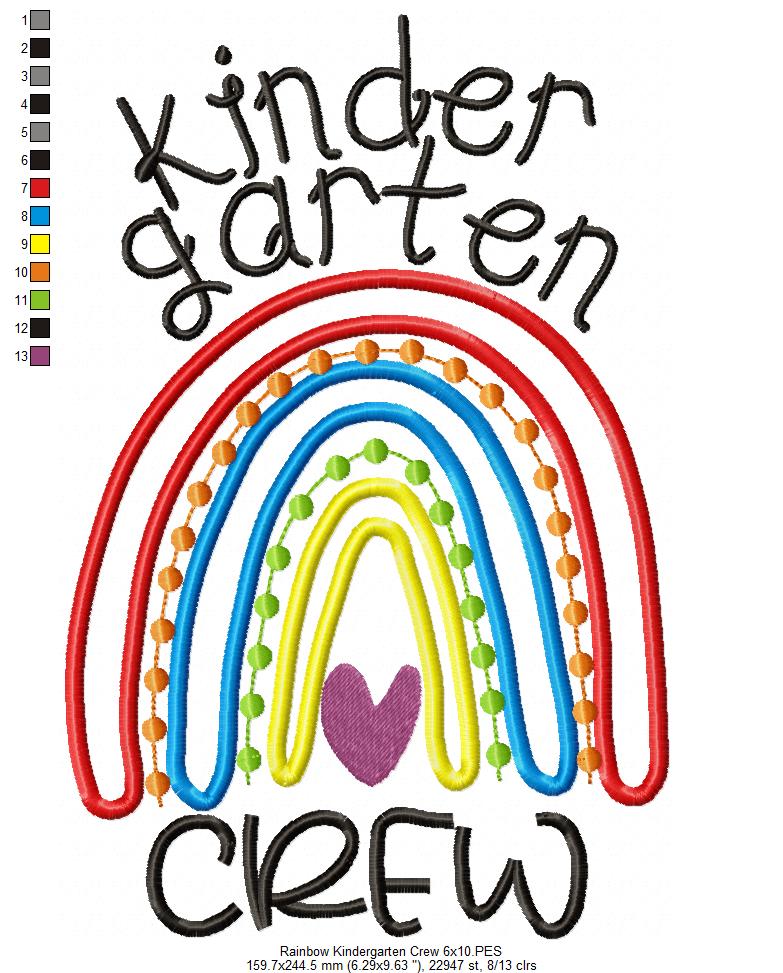 Rainbow Kindergarten Crew - Satin and Bean Stitch Applique - Set of 2 designs
