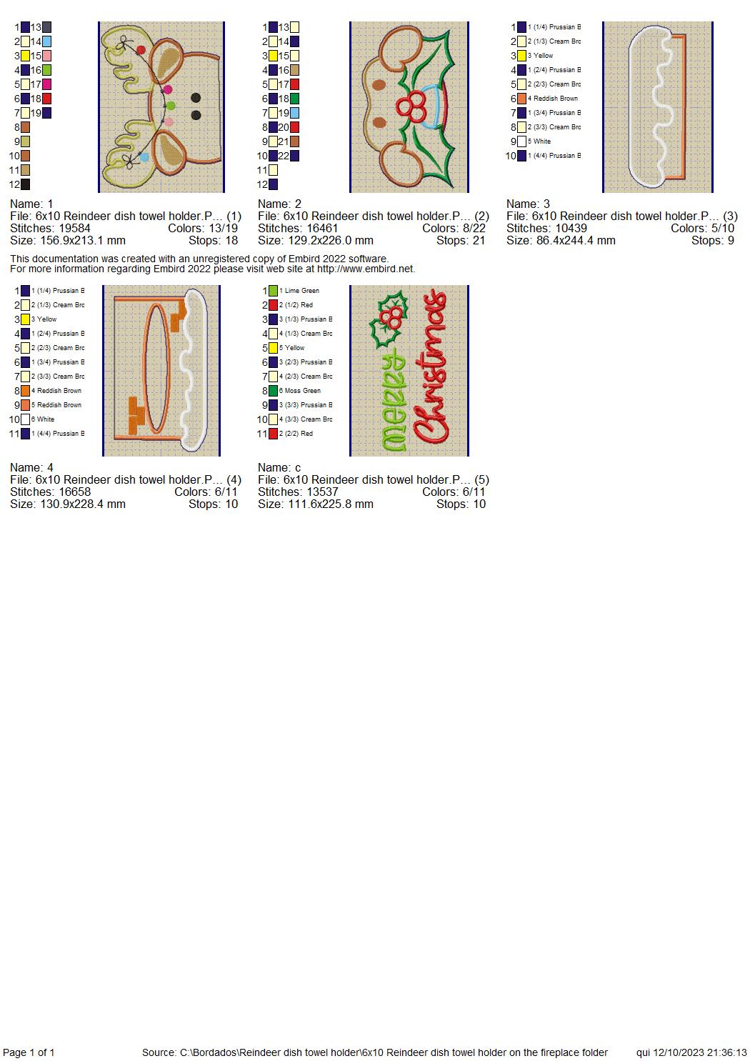 Reindeer dish towel holder - ITH Project - Machine Embroidery Design