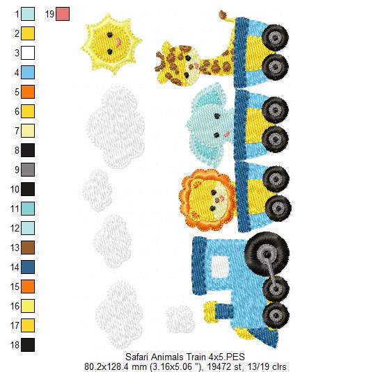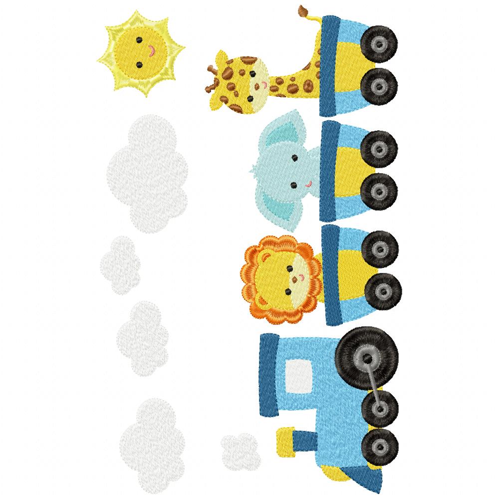 Safari Animals Train - Fill Stitch - Machine Embroidery Design