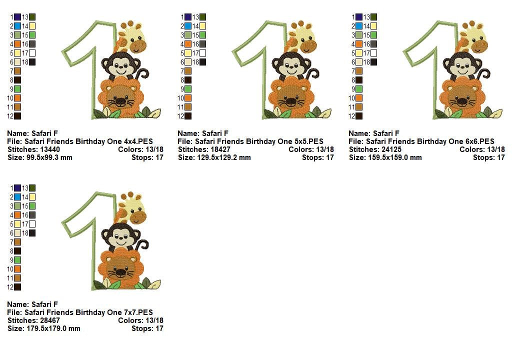 Safari Friends Birthday One – Appliqué – Machine Embroidery Design