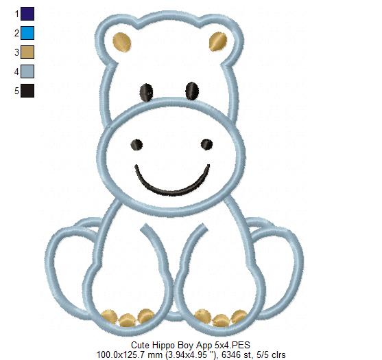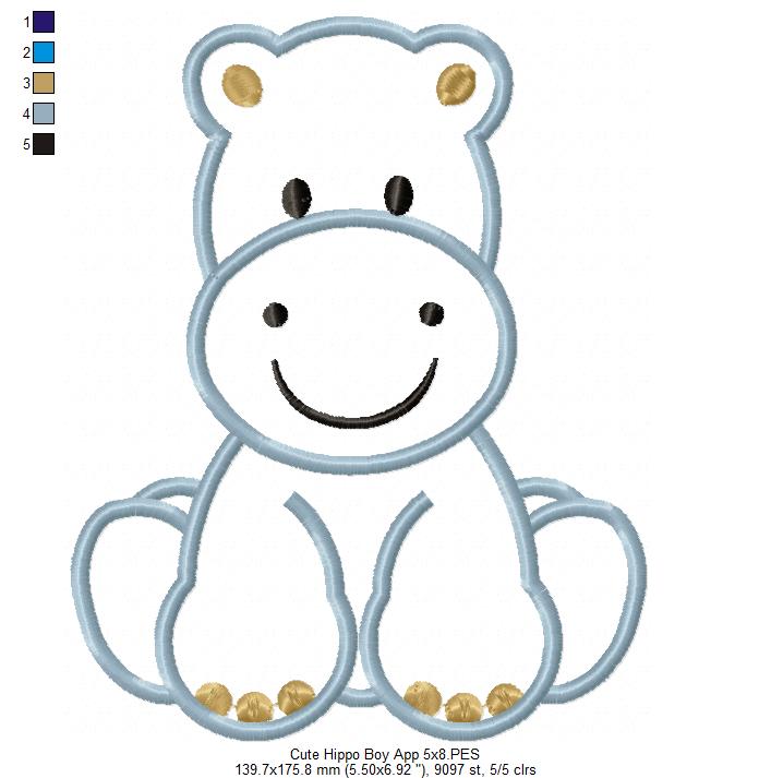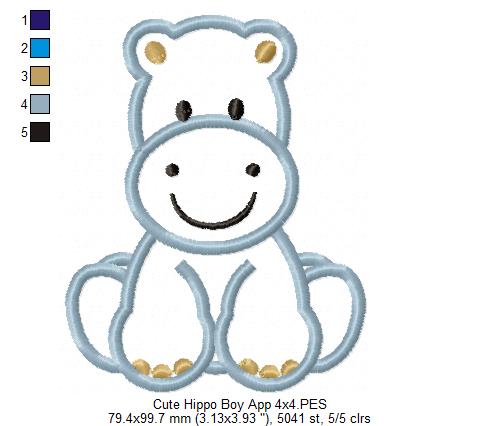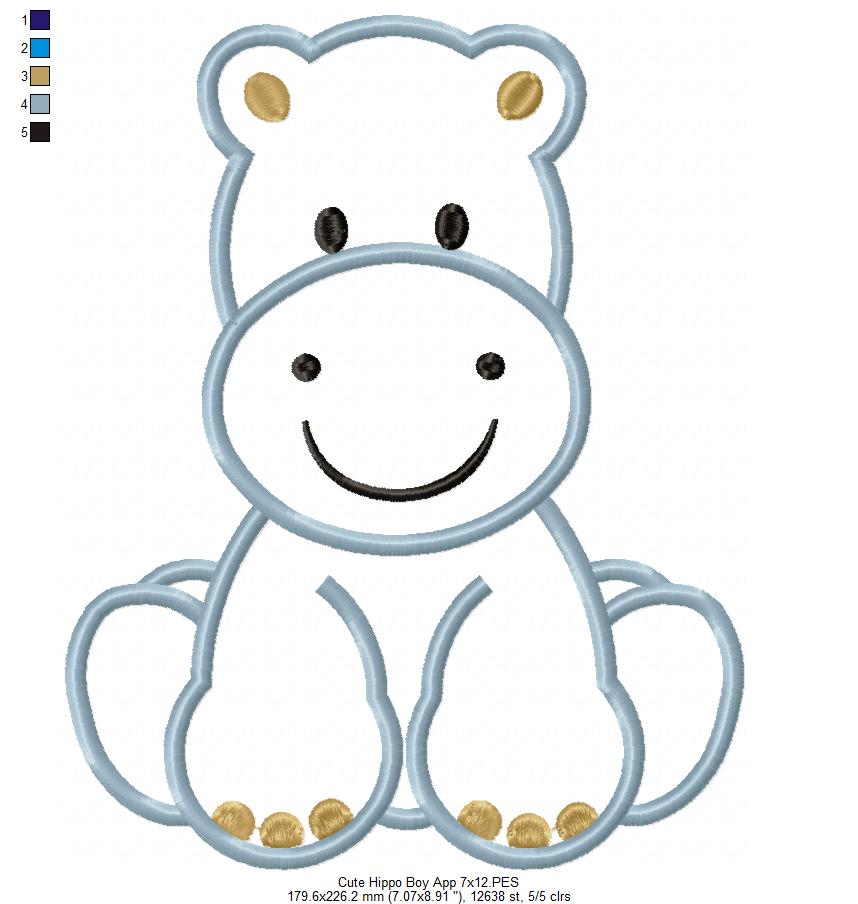 Safari Hippo Boy - Applique - Machine Embroidery Design