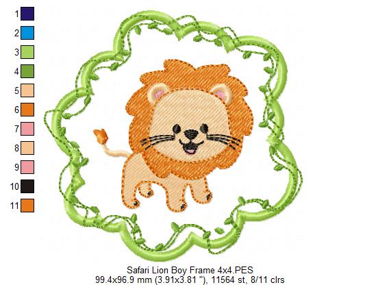 Safari Lion Boy Frame - Applique - Machine Embroidery Design