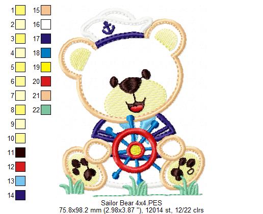 Sailor Teddy Bear Helm - Applique - Machine Embroidery Design