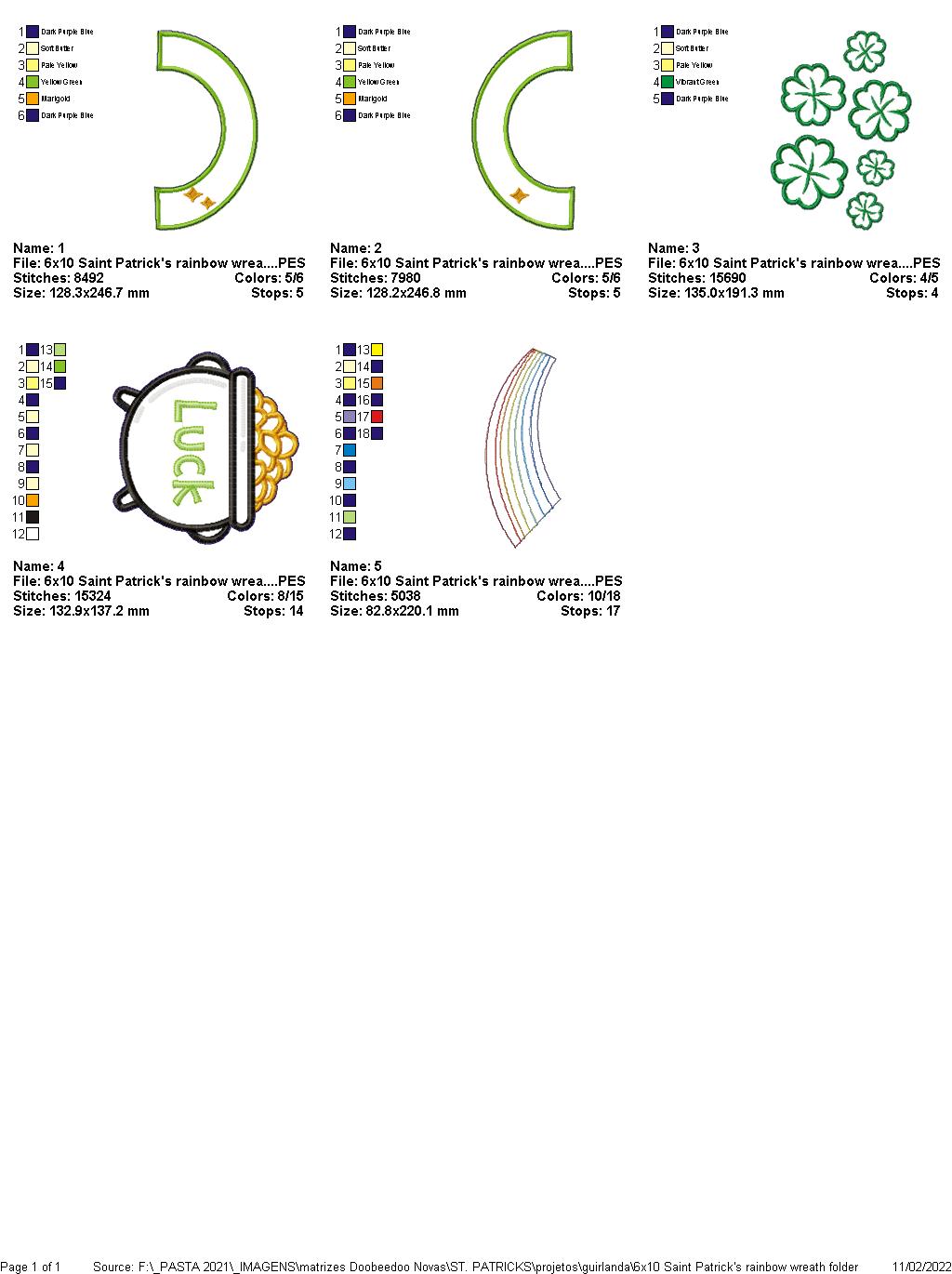 Saint Patrick's Rainbow Wreath - ITH Project - Machine Embroidery Design