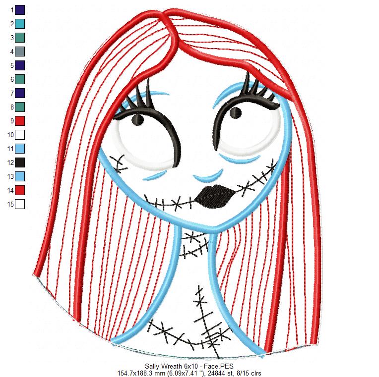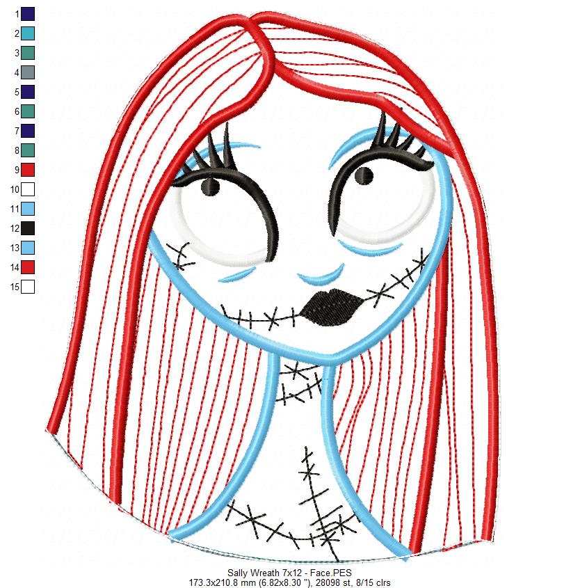 Sally Skellington Christmas Wreath - ITH Project - Machine Embroidery Design