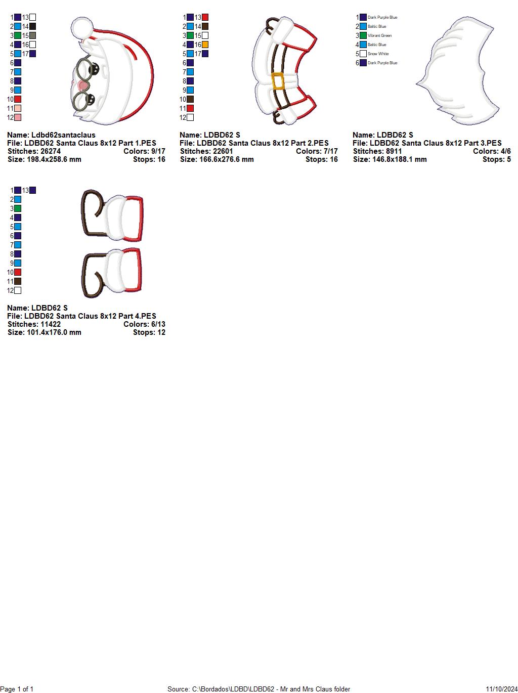 Santa and Mrs. Claus Set - ITH Project - Machine Embroidery Design