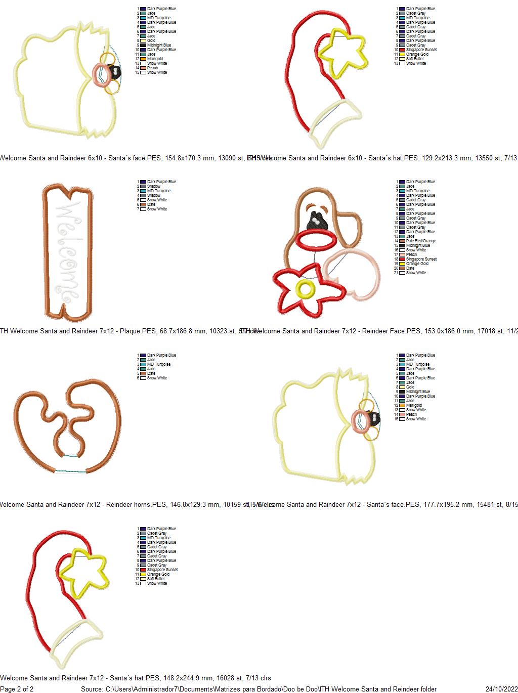 Santa and Reindeer Welcome Ornament - ITH Project - Machine Embroidery Design