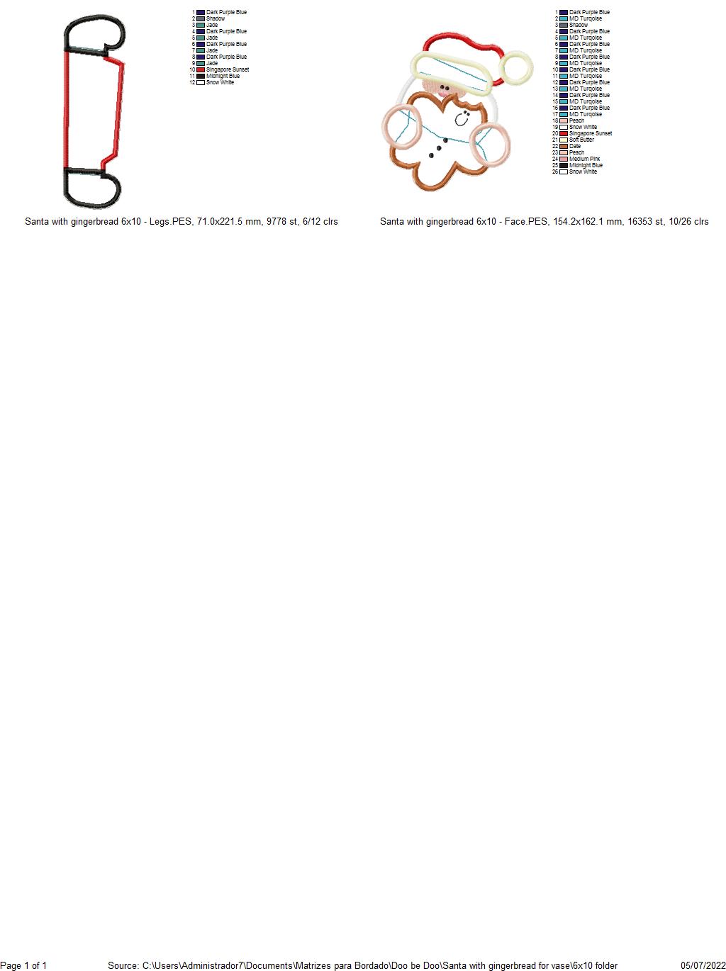 Transform your holiday decorations with our Santa Claus and Gingerbread embroidery design! This instant download will add a charming touch to any fabric. Experience the joy of creating personalized gifts and decor with ease. Get into the holiday spirit and elevate your embroidery projects with this festive design.