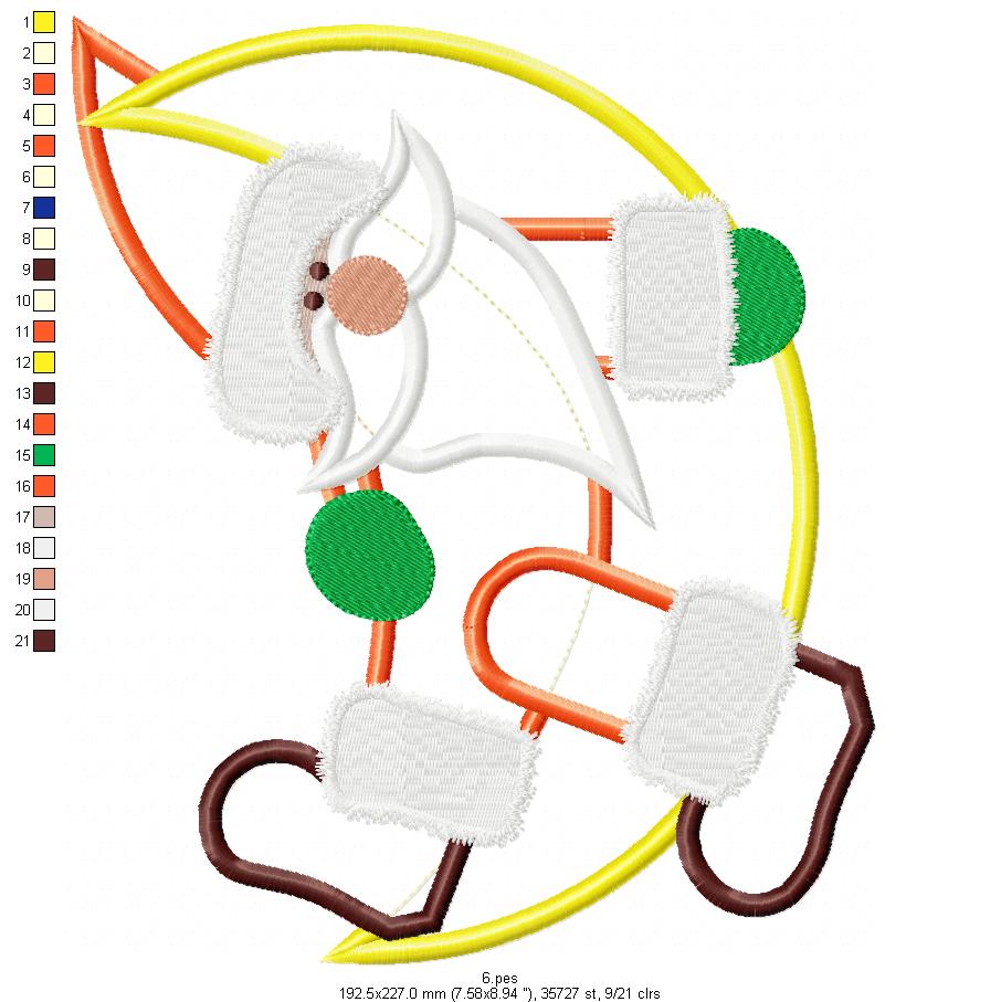 Santa Claus on the Moon - Applique - 6 Sizes - Applique - Machine Embroidery Designs