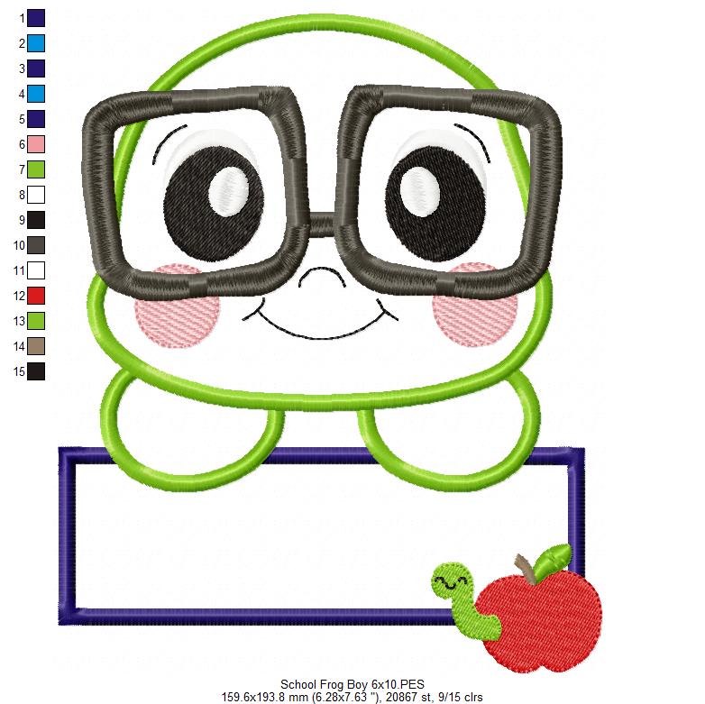 School Frog Girl and Boy - Applique - Set of 2 designs