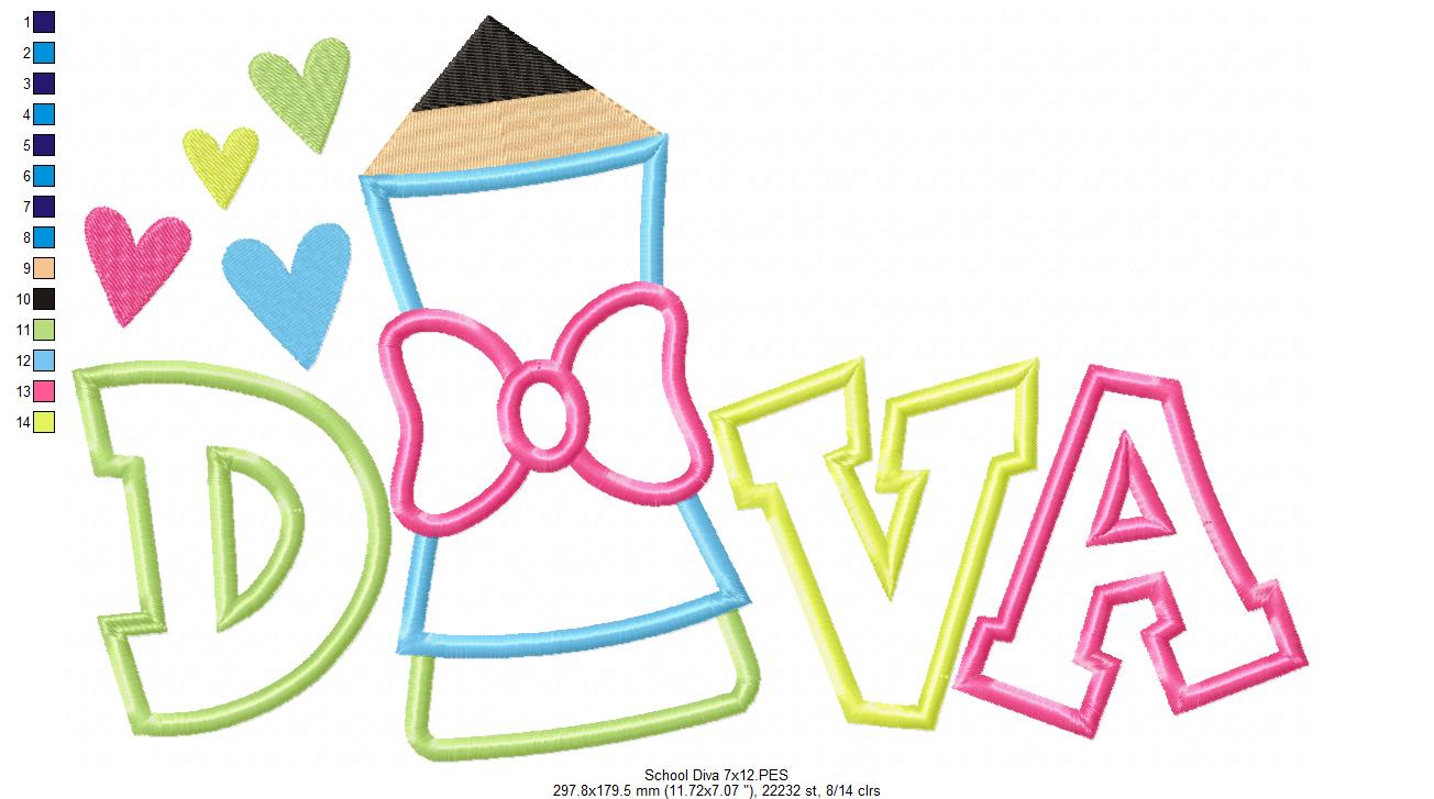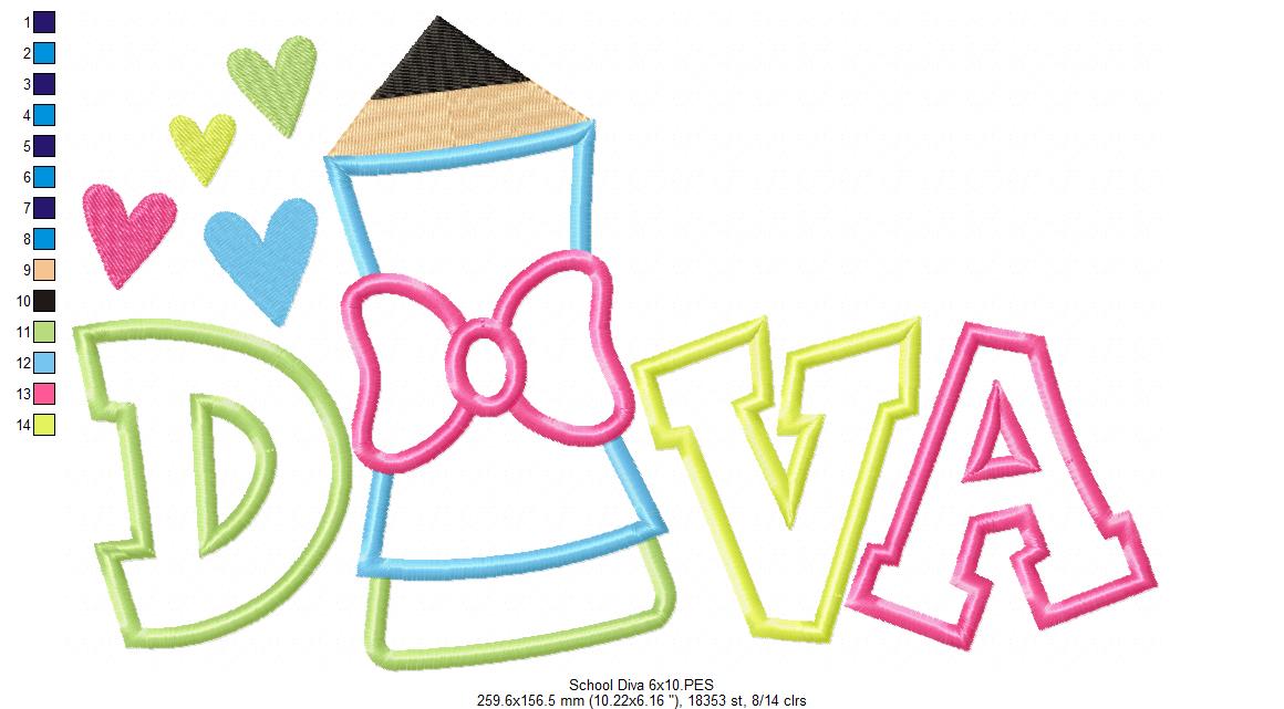 School Pencil Diva - Applique - Machine Embroidery Design