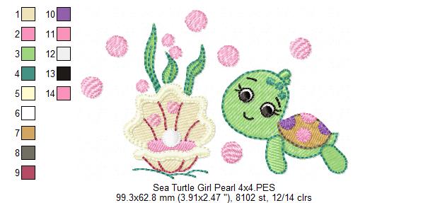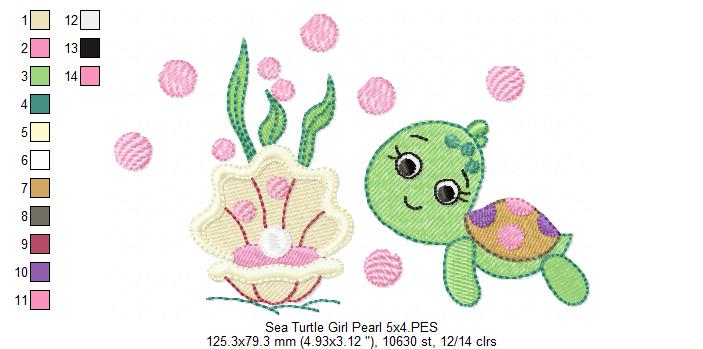 Sea Turtle Girl, Shell and Pearl - Fill Stitch