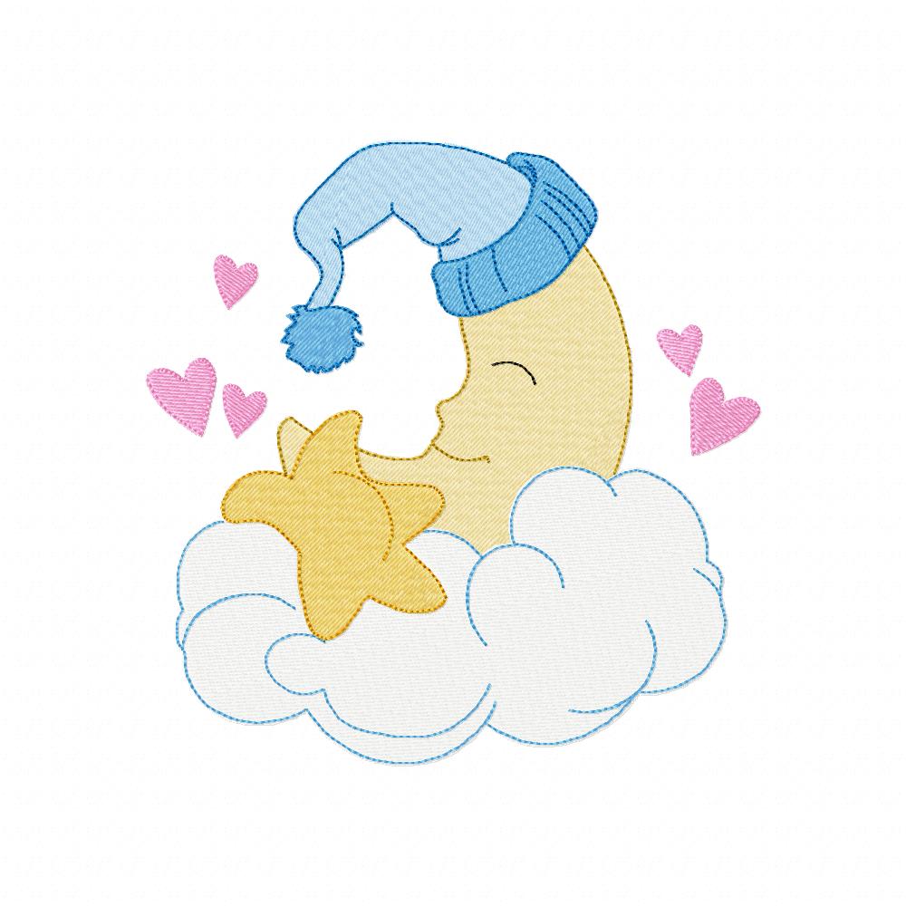 Sleepy Moon, Cloud and Stars - Fill Stitch