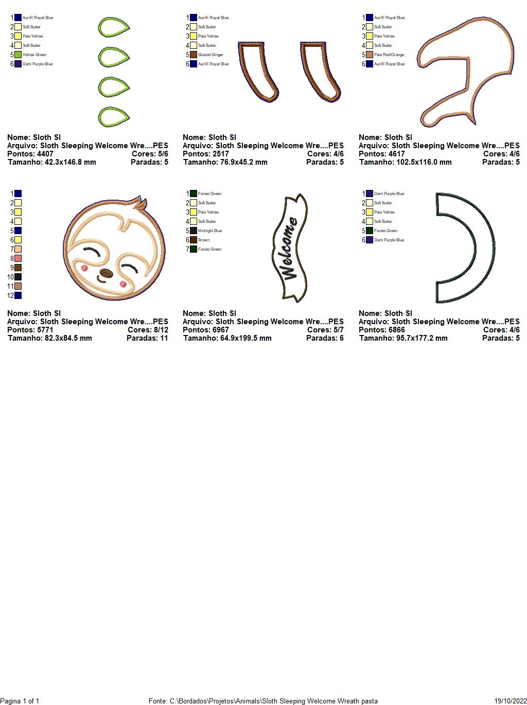 Sloth Welcome Wreath Set of 2 Designs - ITH Project - Machine Embroidery Design