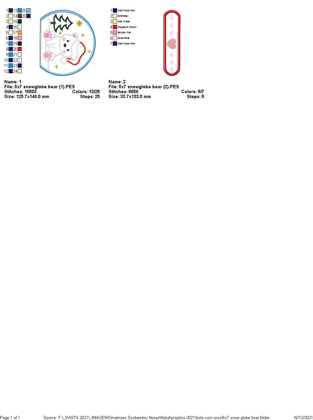I did 2 of the bear globes and 1 of the Christmas trees as gifts for my neighbors . They went together perfectly. put them in a floral piece with light for them. I just love doing your in the hoop designs